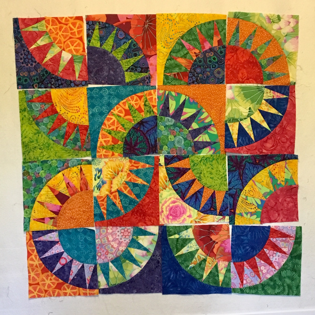 I’ve been playing with some ideas for the border for this wall hanging, but haven’t yet landed on what I’m going to do. So it hangs on my design wall and I’ve been working on some smaller projects as I mull this over. I’m thinking I’ll go simple with the border to let the blocks shine.