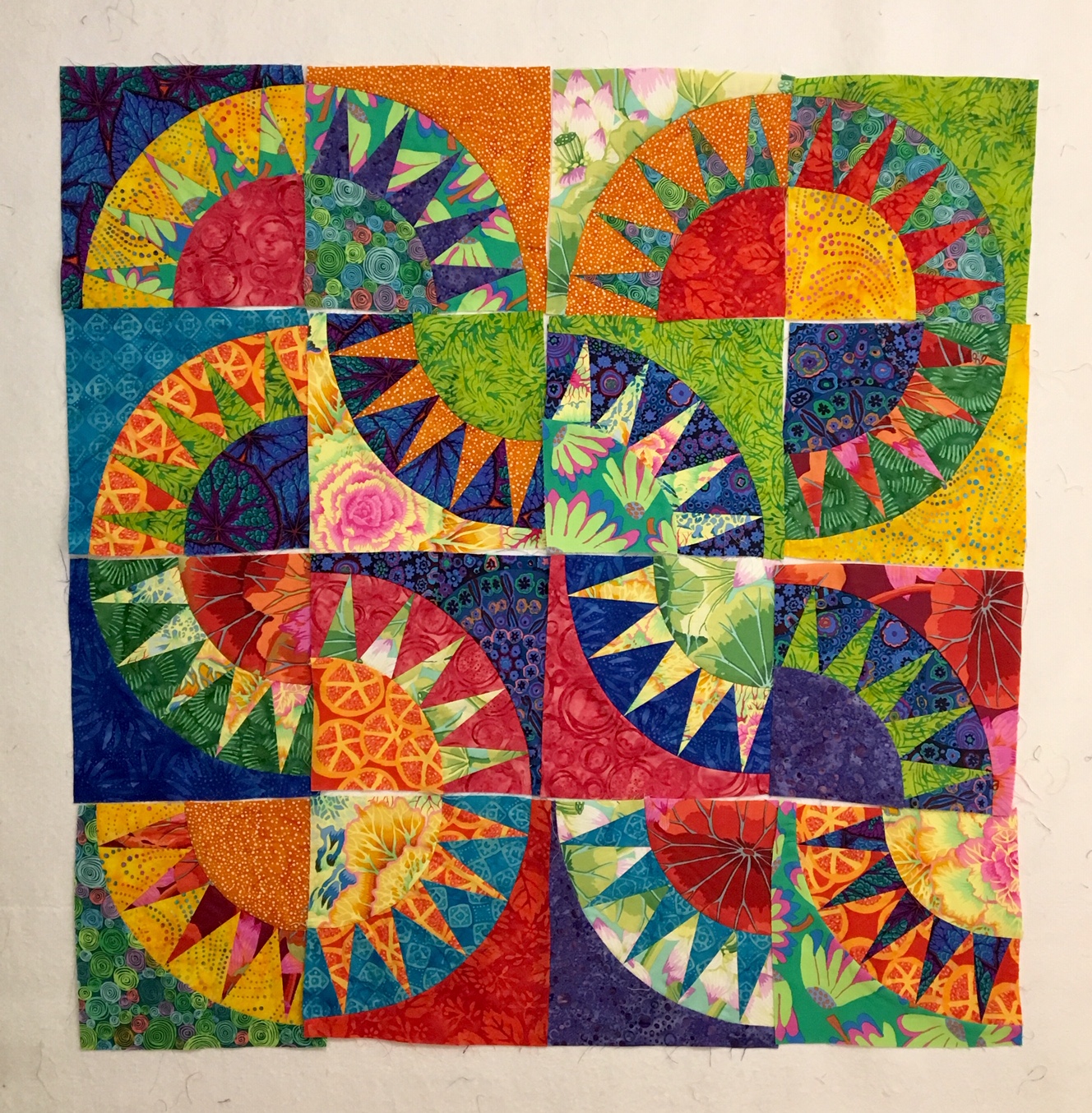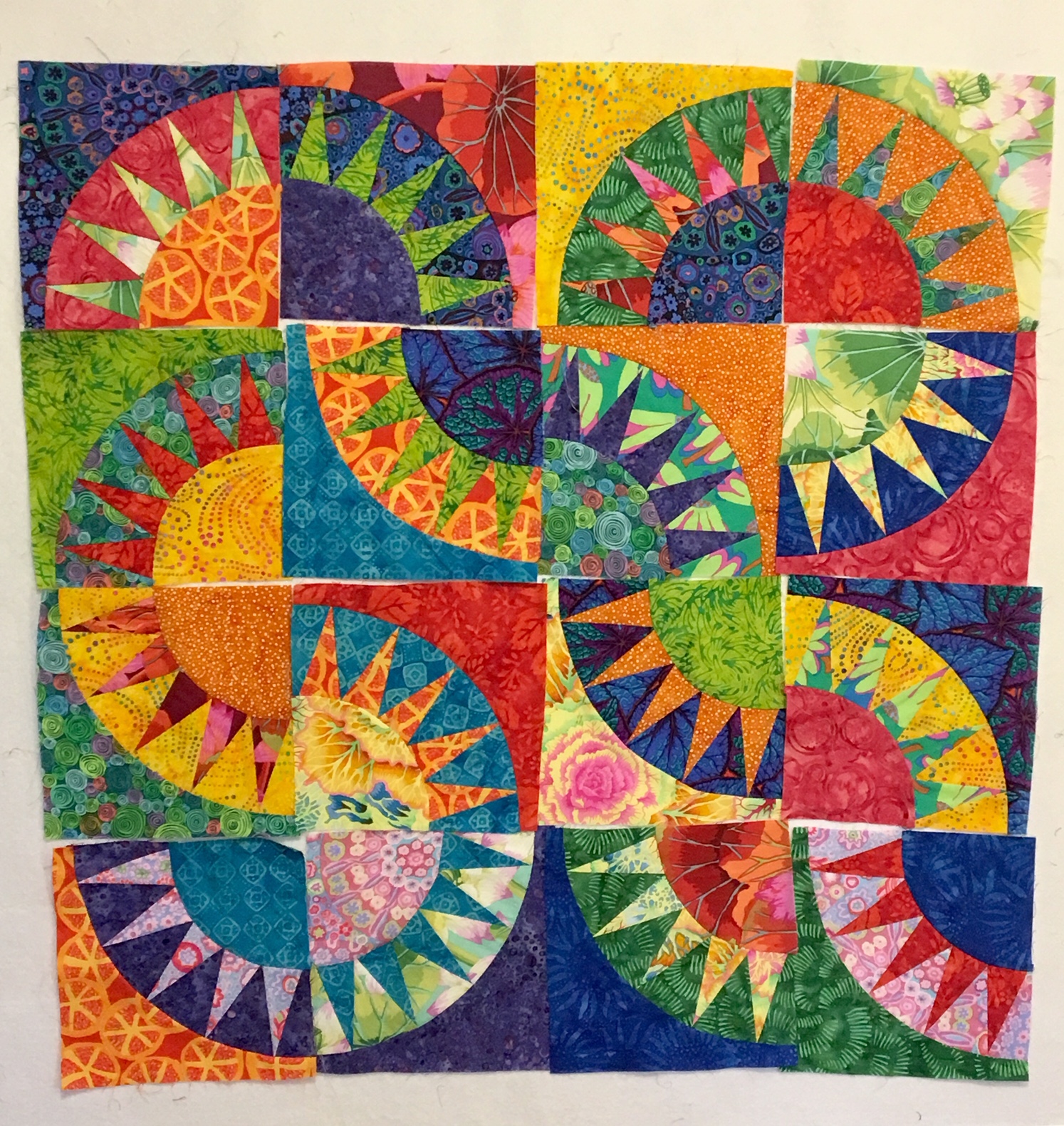 I played with A LOT of different layouts for this wall hanging. The small size really limited what I could do. I typically prefer a less symmetrical arrangement of New York Beauty type blocks, but there weren’t enough blocks in this wall hanging to make a nice random arrangement. It just felt too chaotic.