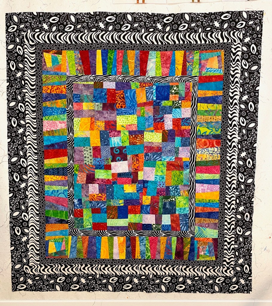 With the borders this quilt measures about 97 inches square. This will be a nice size quilt for my bed. And yes… I’ve decided that I’m keeping this one. Now I just need to piece the backing and get this off to my long arm quilter.
