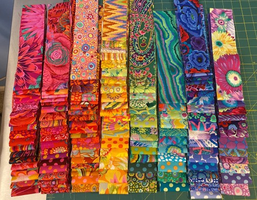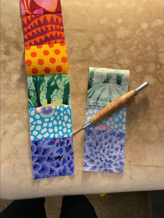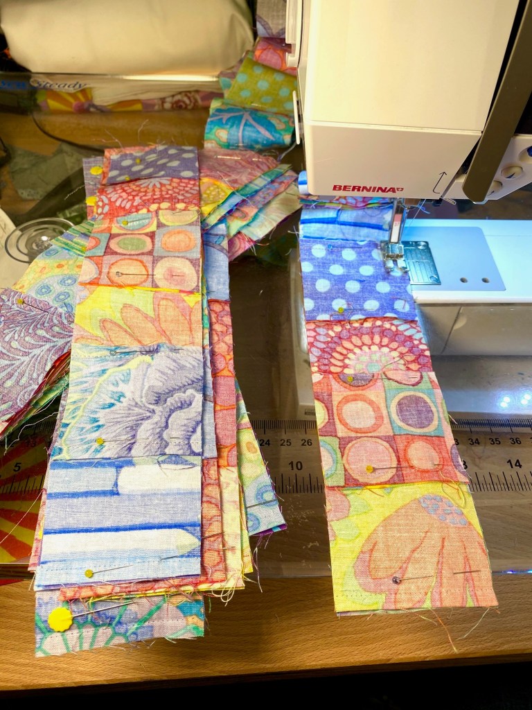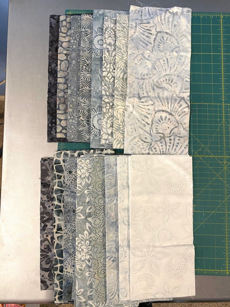 Before I left my sewing room for the evening, I started sewing the strip sets for the next 8 Ice Storm quilt blocks. I’ll finish up these strip sets tomorrow night.