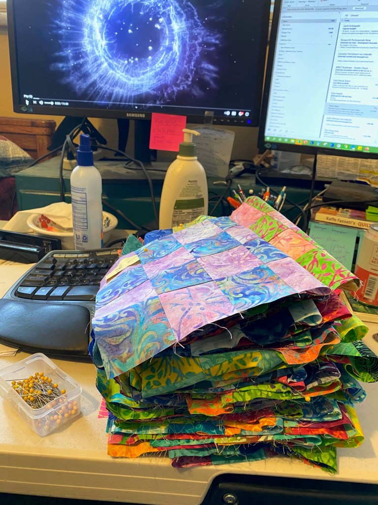 They’re all numbered, stacked up and accordion folded. I’ll save pinning the rows together for my next long Zoom call. I have a few webinars coming up later this week.