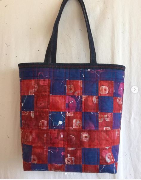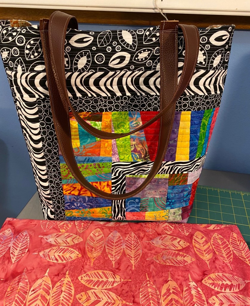 I got a message today from a friend I used to work with in Salt Lake. He had seen the bright and graphic batik bag I made from cutting up my wall hanging. He asked if I would make one for his mom for Mother’s Day. She has macular degeneration and he said her vision is failing but she can see bright colors. So I told him I had a bag that is essentially the same bag that I could finish up for her.