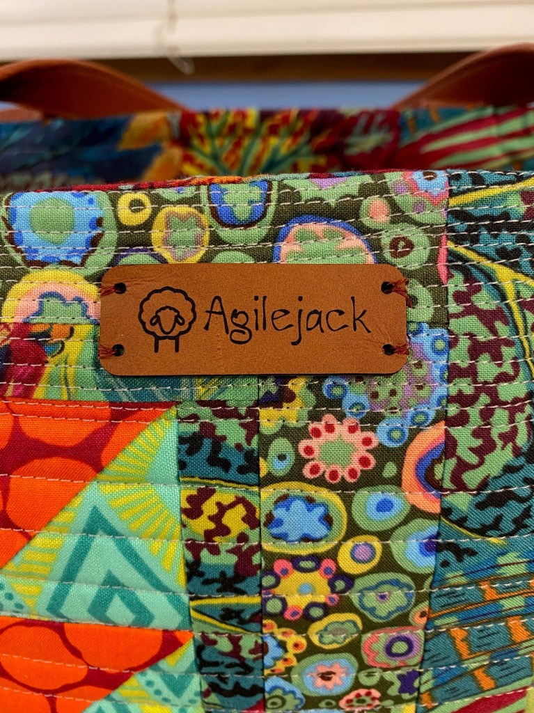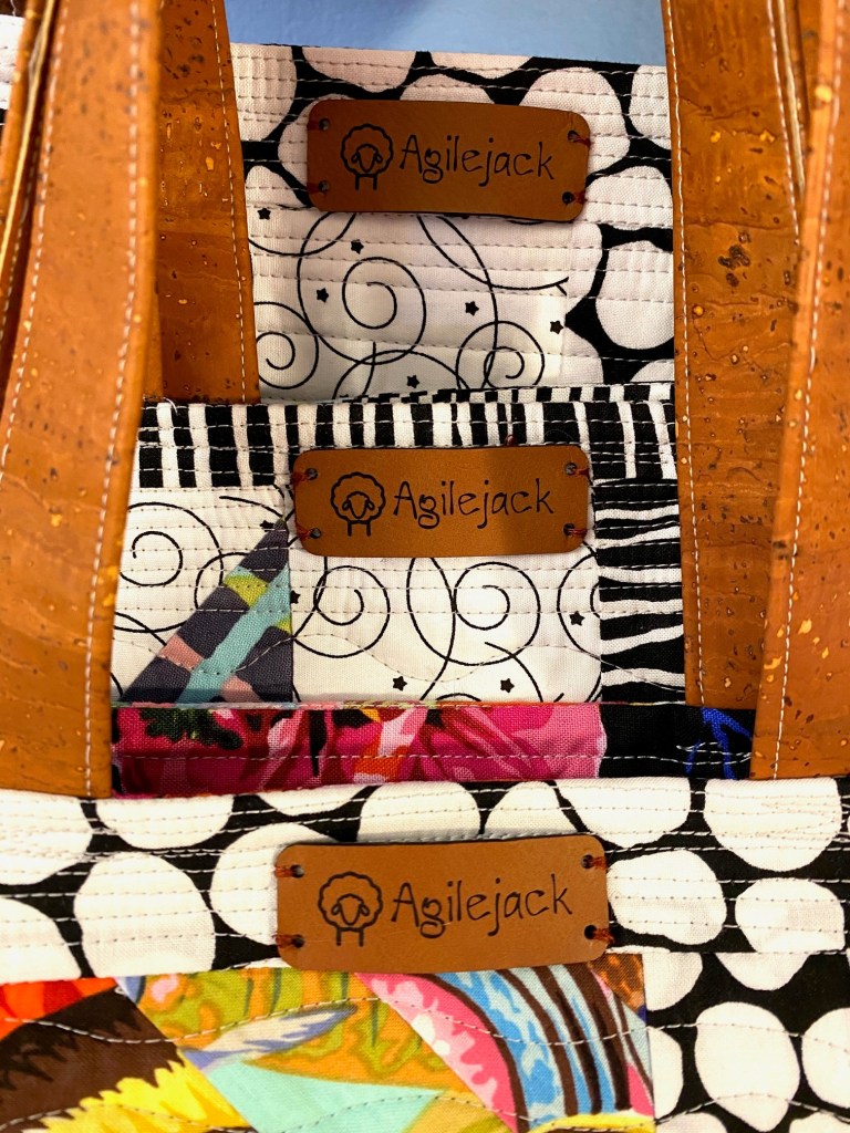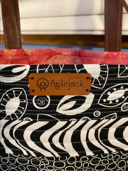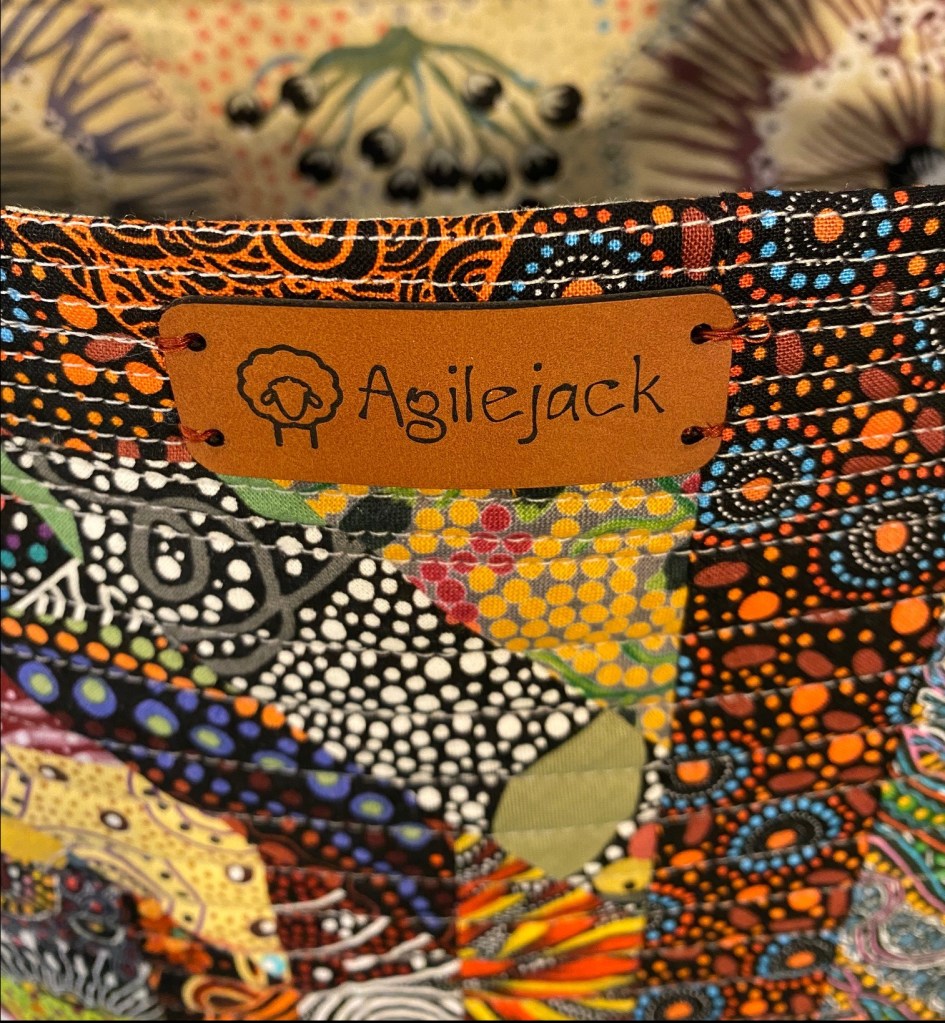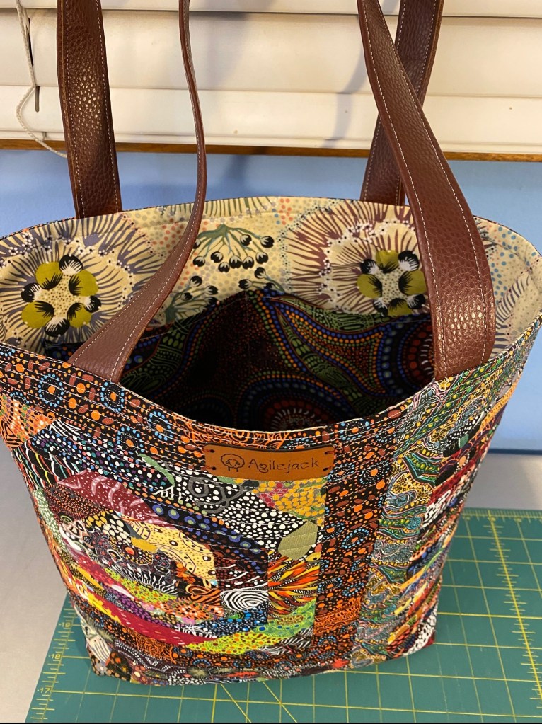 After I finished this bag I sewed labels on all the other bags I’ve made recently. It looks really good on this Aboriginal fabric bag.
