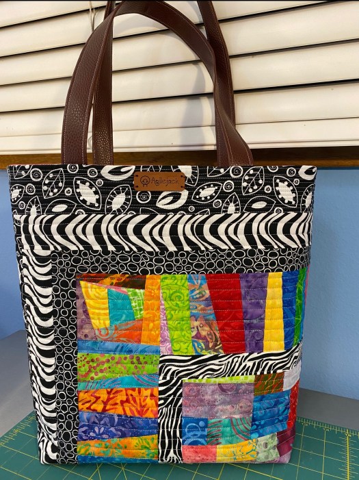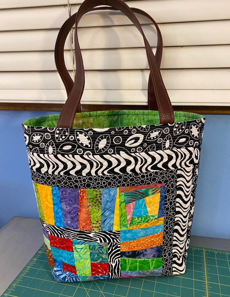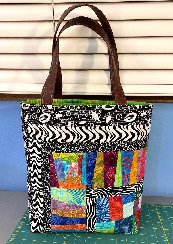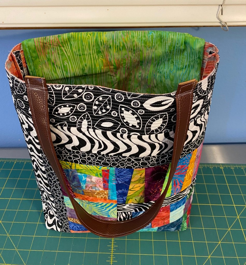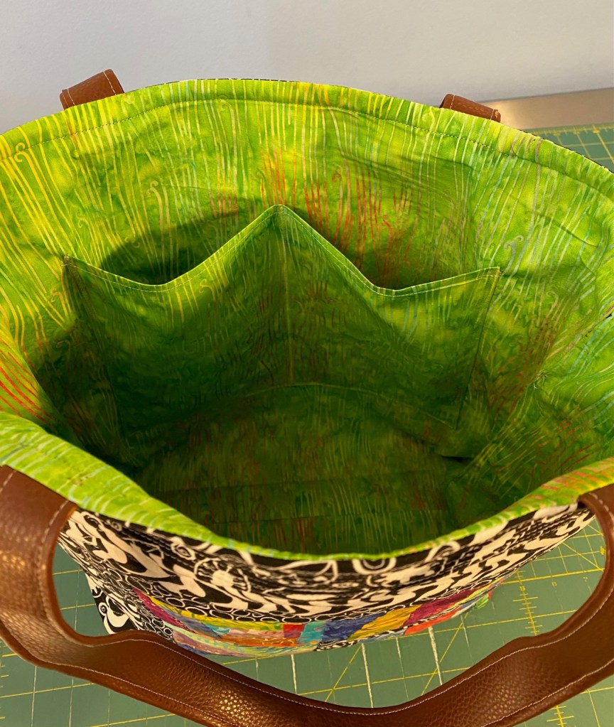 I’m feeling a little achy and tired tonight so I didn’t do much sewing. But I did manage to finish the batik Frankenbag that I started last night.