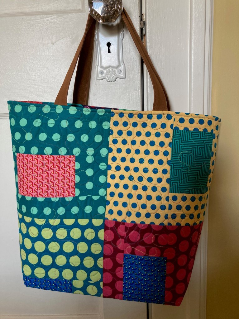 Here’s the back of this bag. I love this looser and swirly quilting. It makes this bag feel comfy and well loved.