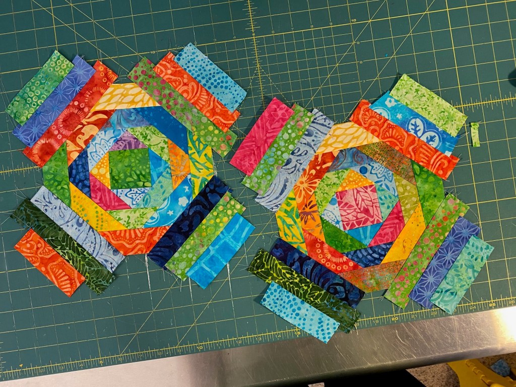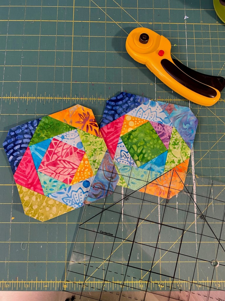 Smooth sailing from here on out! Here’s my two blocks prior to the final trim.