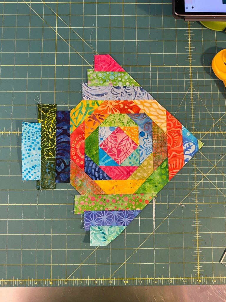 I had to take a photo when one block was half way trimmed because it looks like a fish!