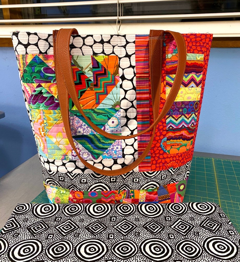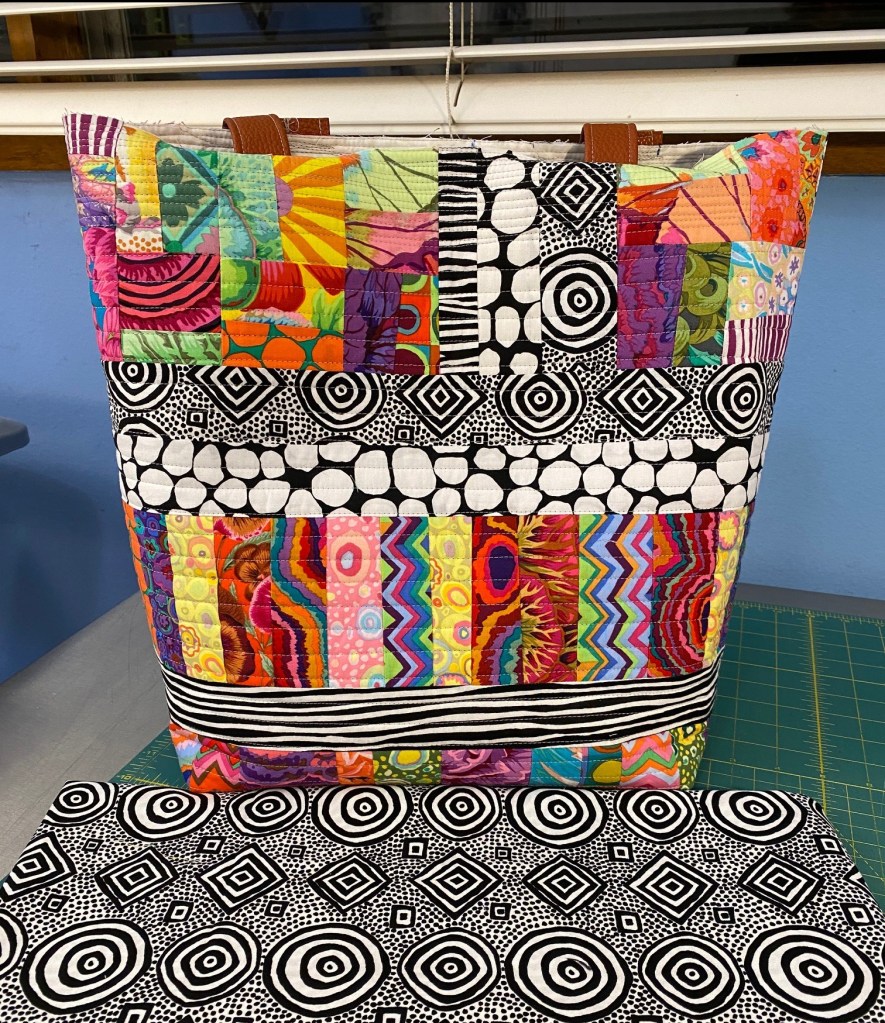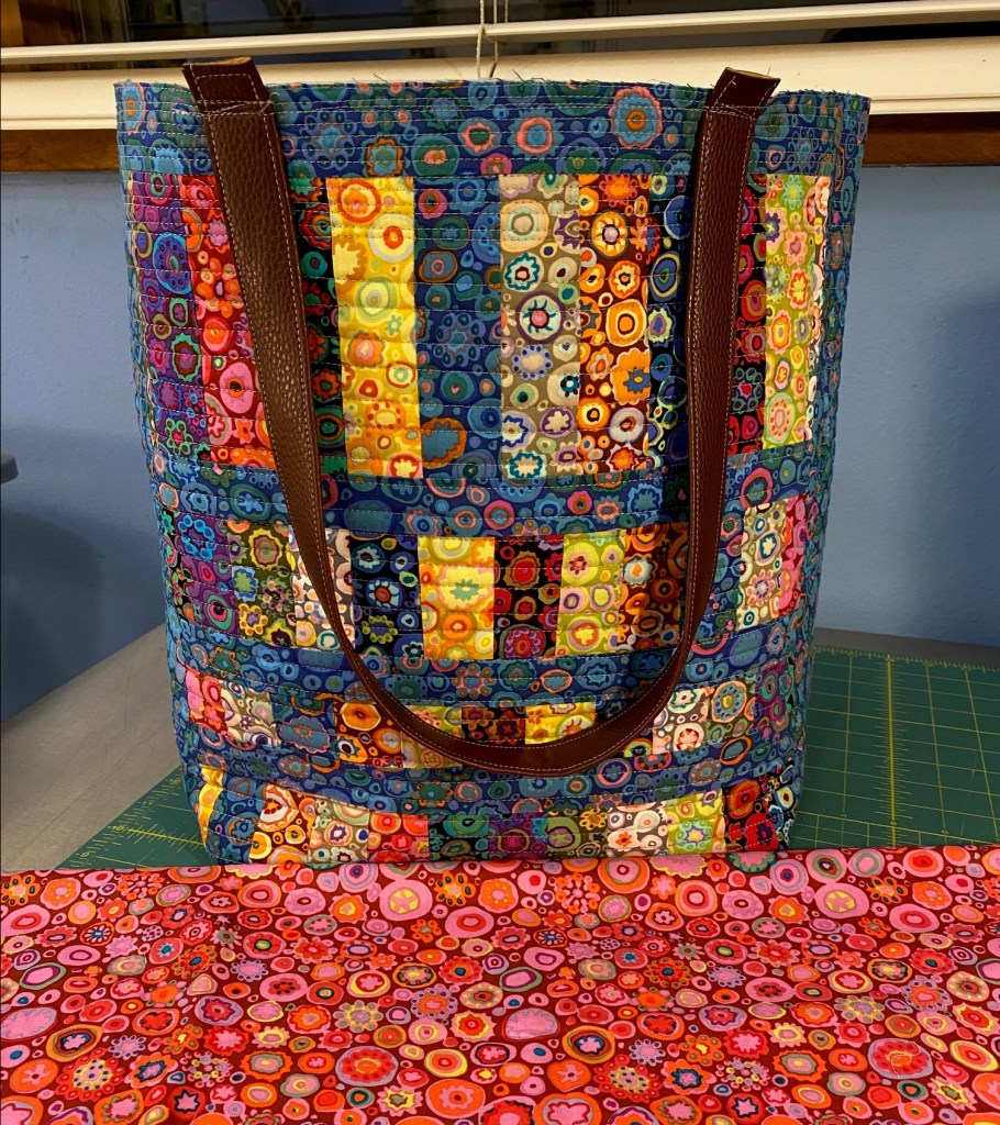 I’ve had a productive couple days of sewing. Yesterday I worked on this new Frankenbag, but I made it from all new fabrics. Not scraps.