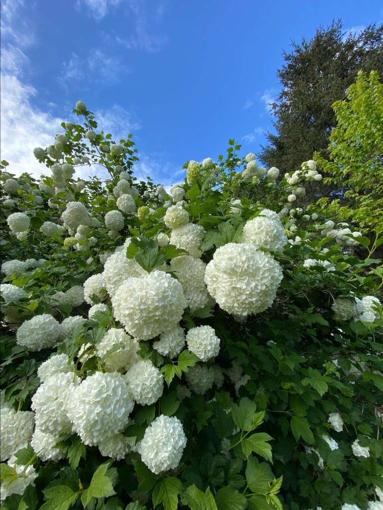 My snowball bush is in full bloom and it’s having a really good year.