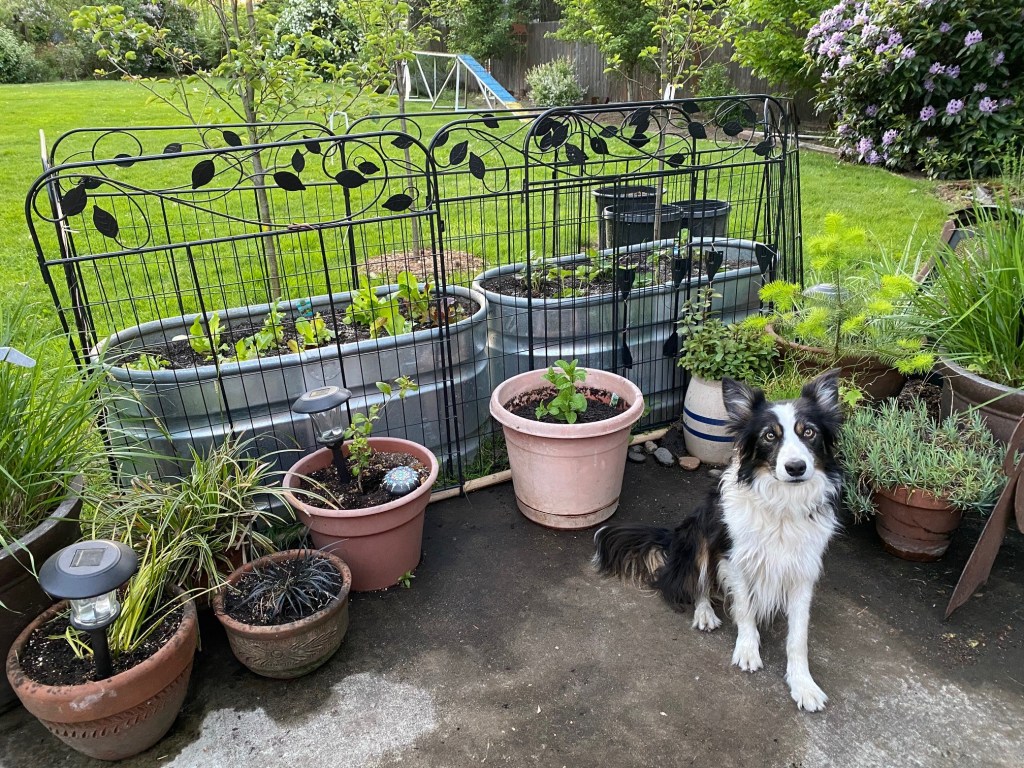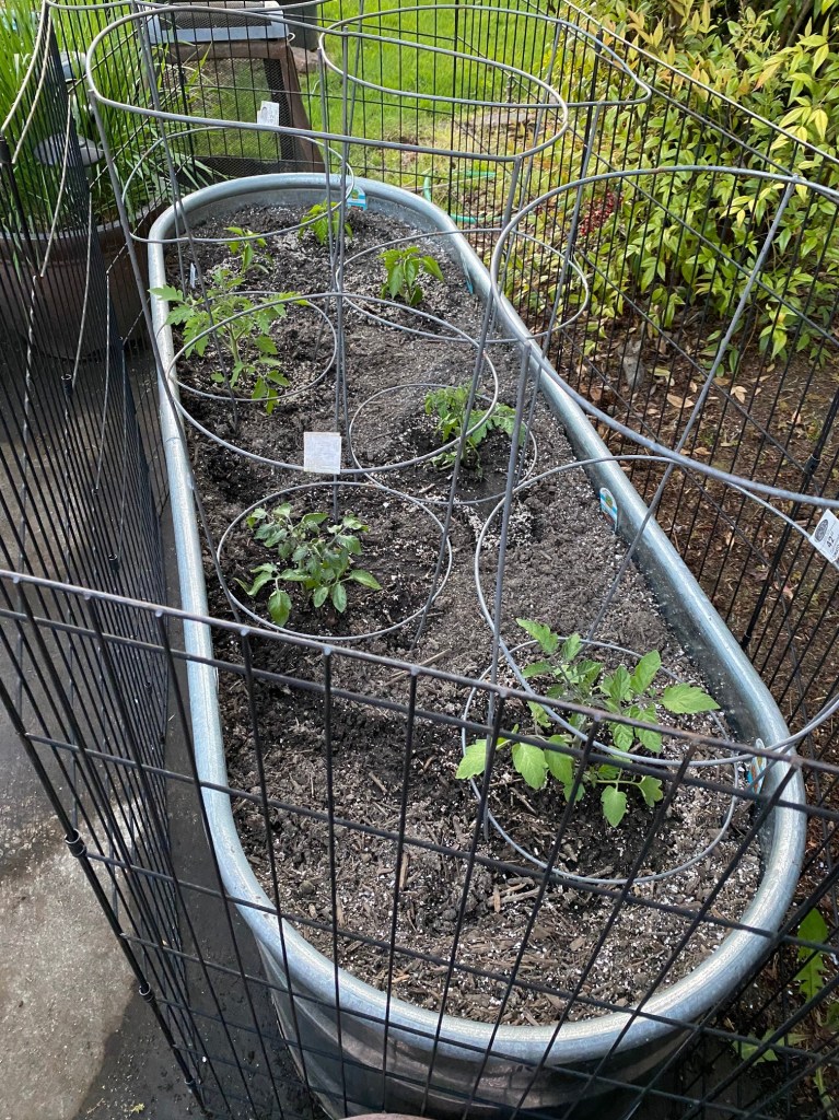So I have fences around all the tanks to keep bad dogs out. He’s going to be in real trouble if he helps himself to strawberries or tomatoes!