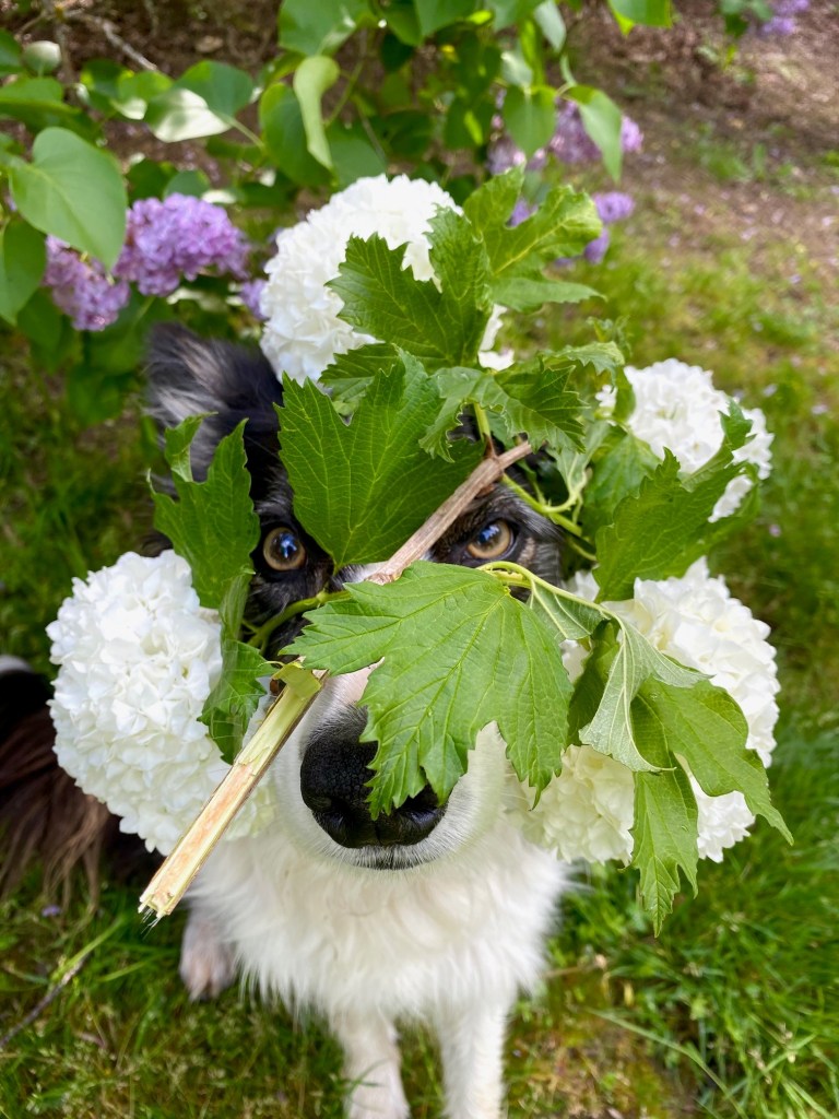 My snowball tree is in full bloom right now and it’s pretty spectacular! Some of the blooms are as big as my two fists together.