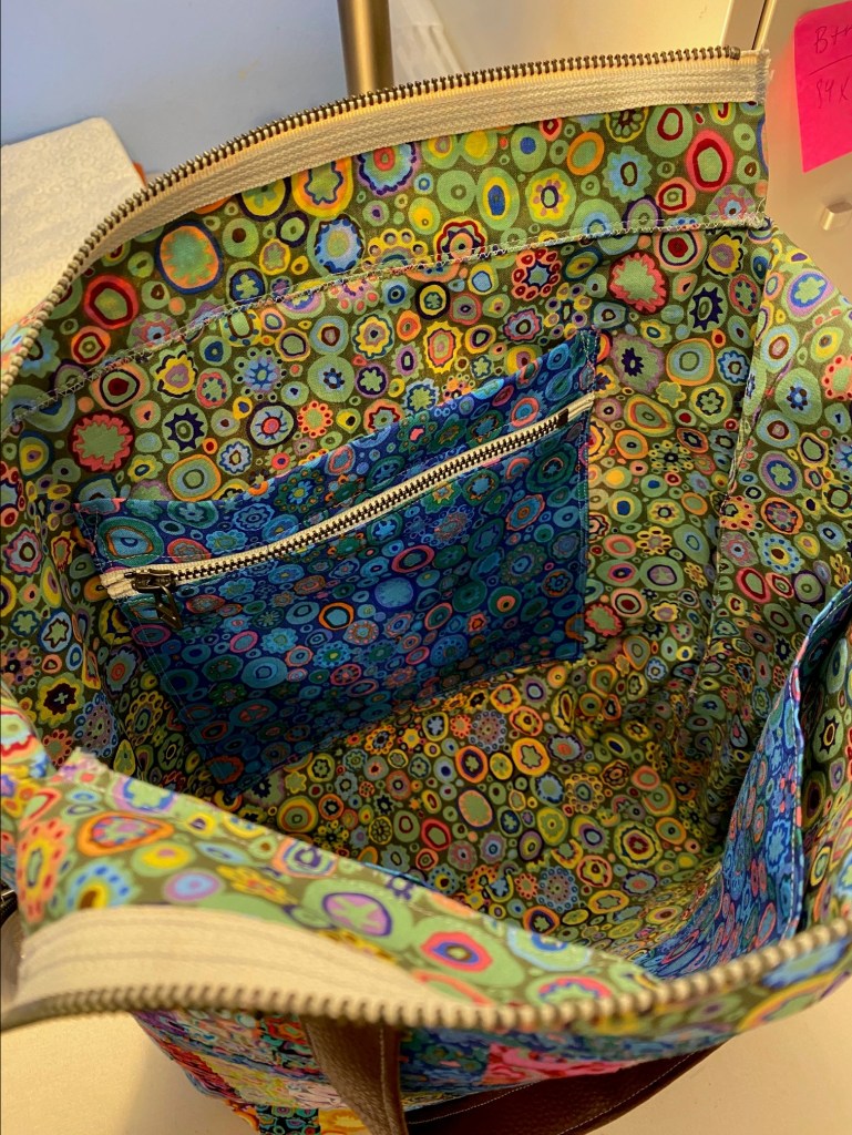 And here’s the lining. She added an extra pocket with makes this really functional.