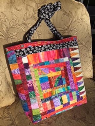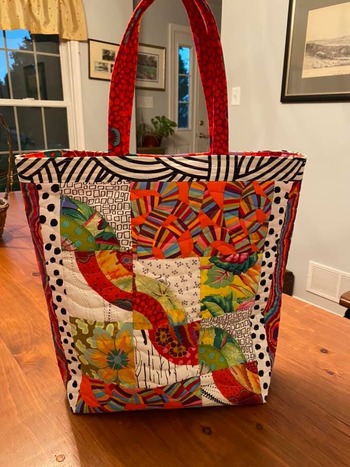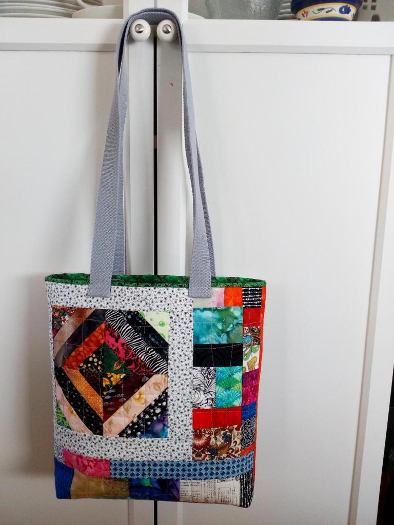 This first bag is from Nancy Lindsay. I love the eclectic fabrics in this bag, and look at that little fox panel. How adorable is that?