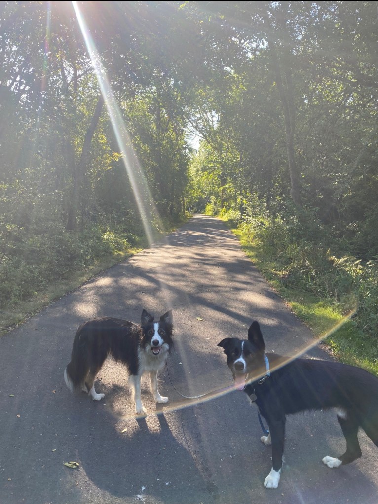 It looked unlikely that I’d be able to get a mid day walk today so I got up early and took Bender and Rico for a three-mile walk before work.