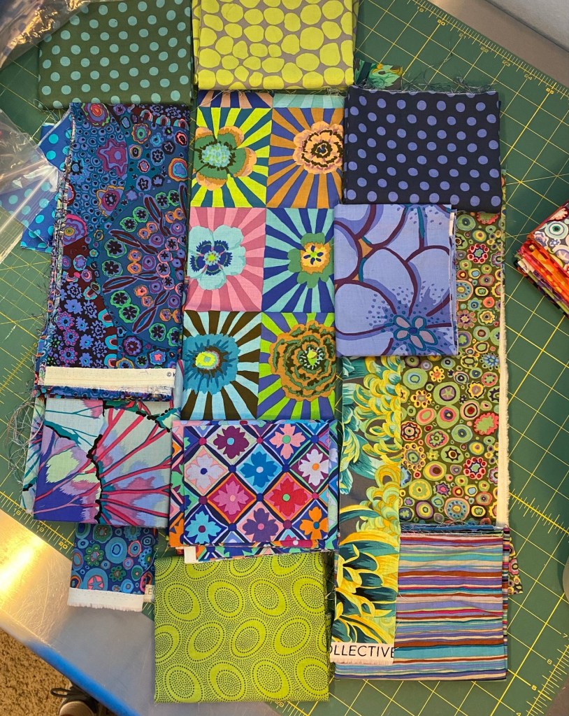 That eyelash/palm fabric is not a Kaffe Collective fabric. I’m not sure what it is but it’s cool!