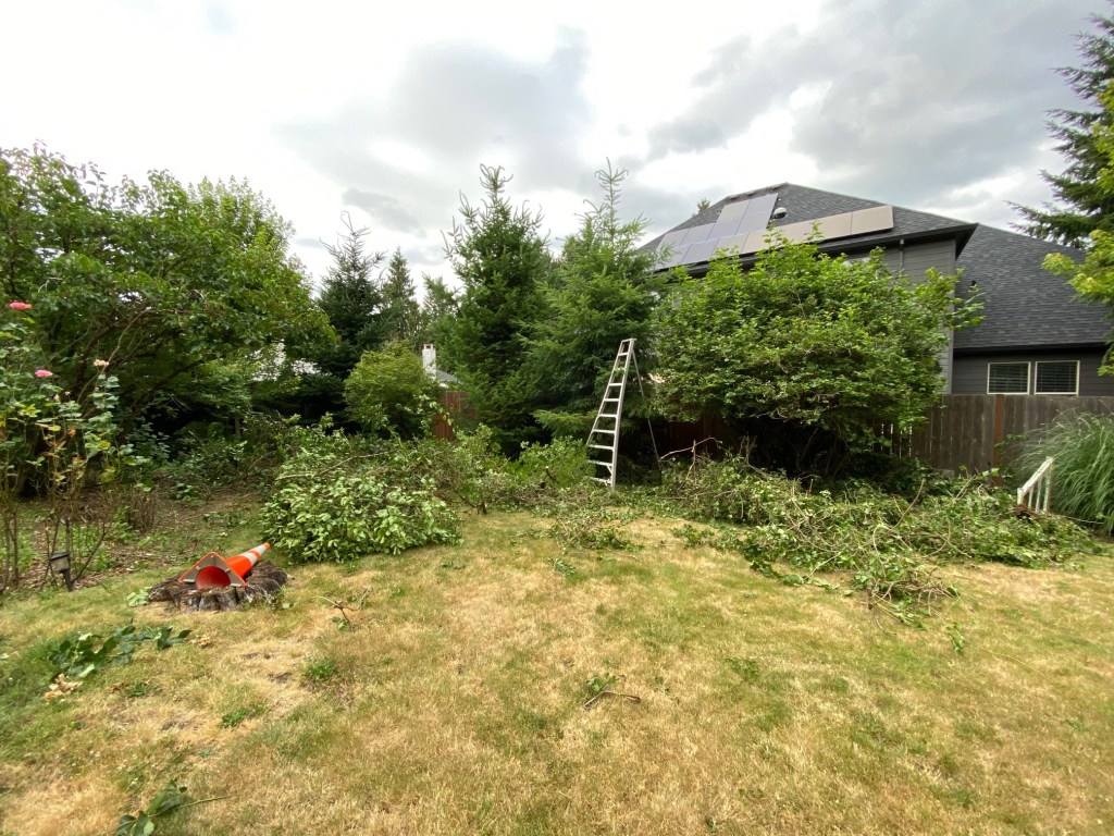 My yard guy came by yesterday to do a bunch of pruning all around my yard. He came back today to finish it all up.