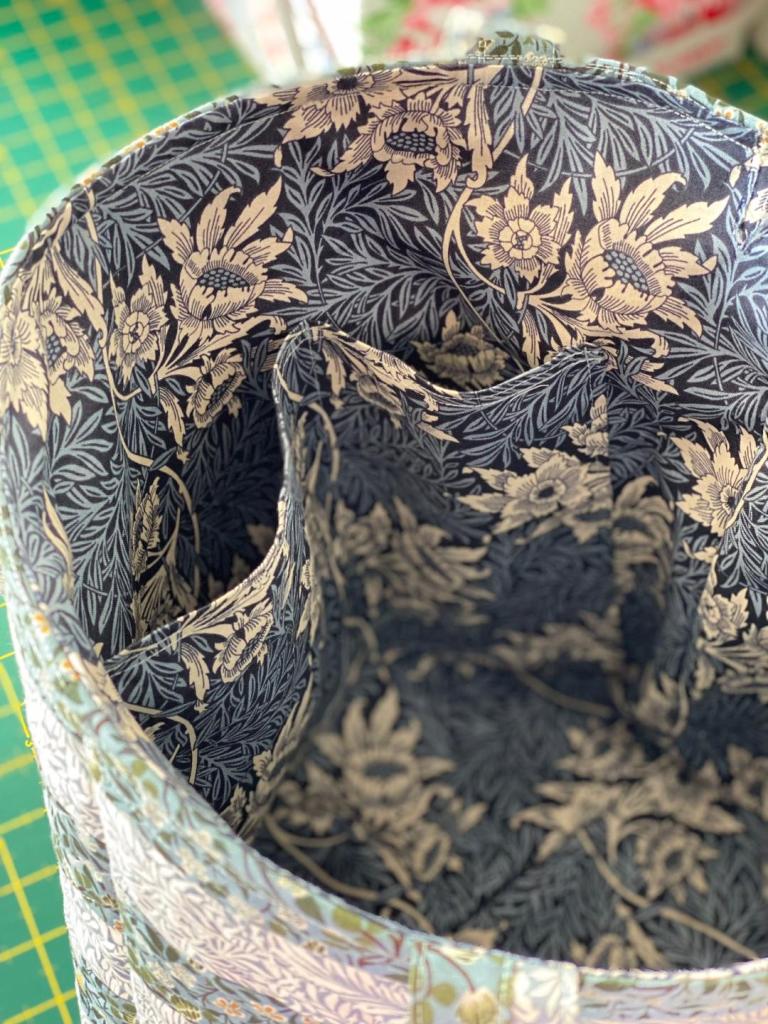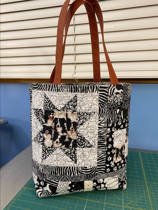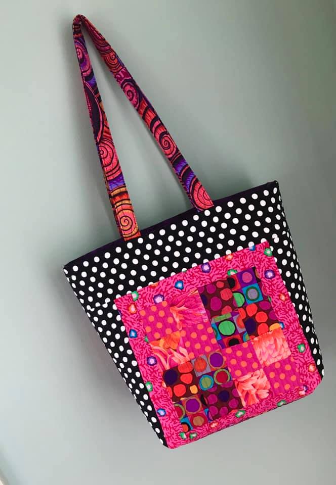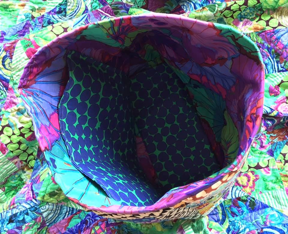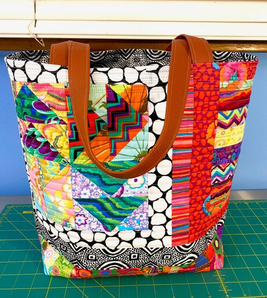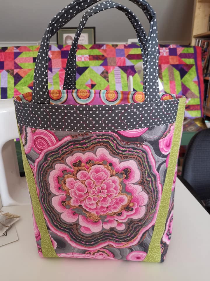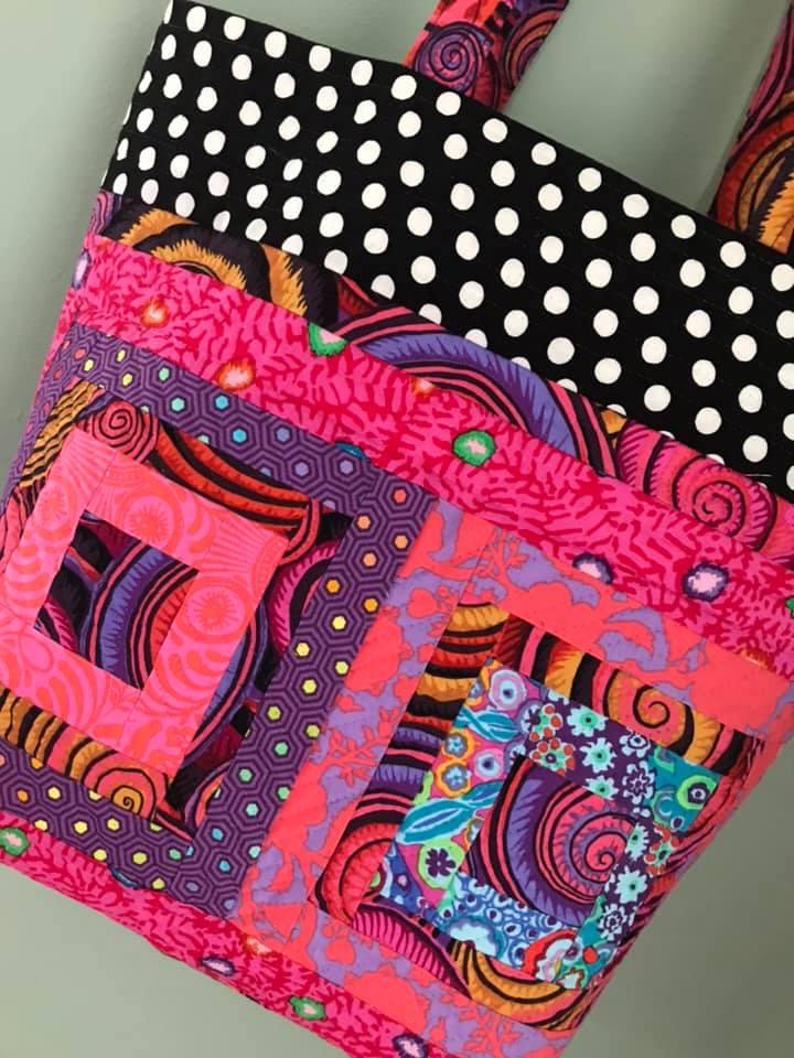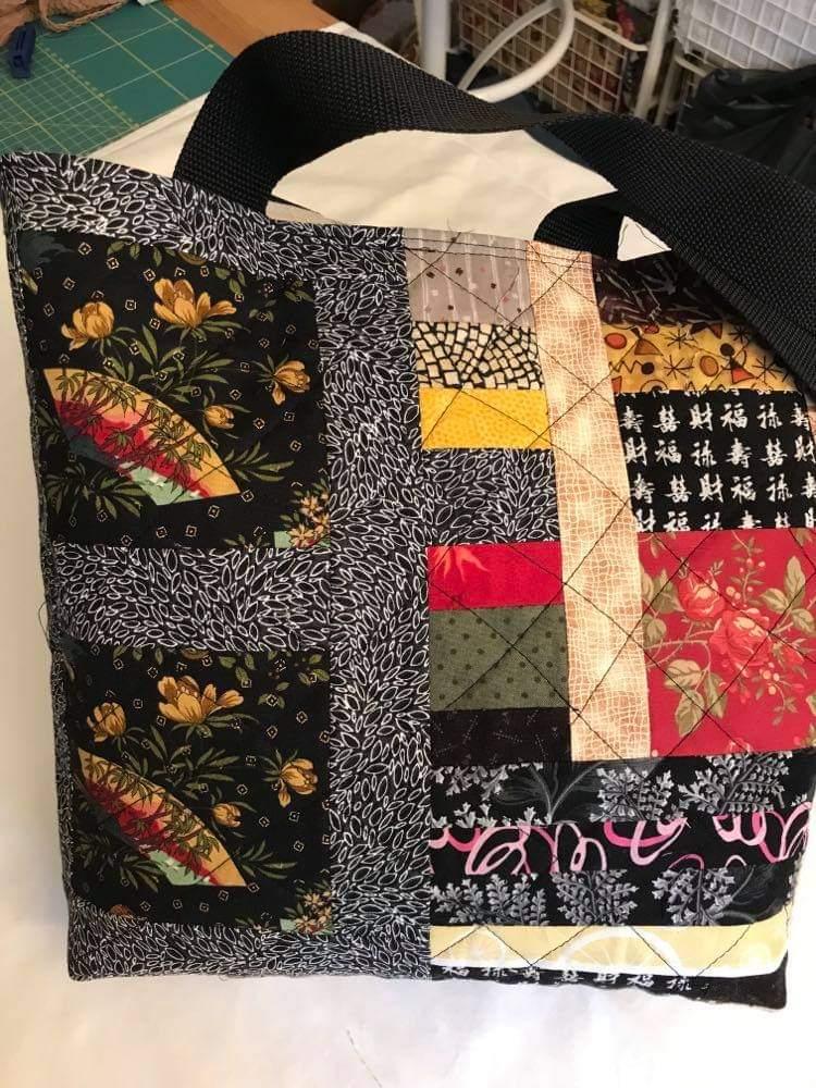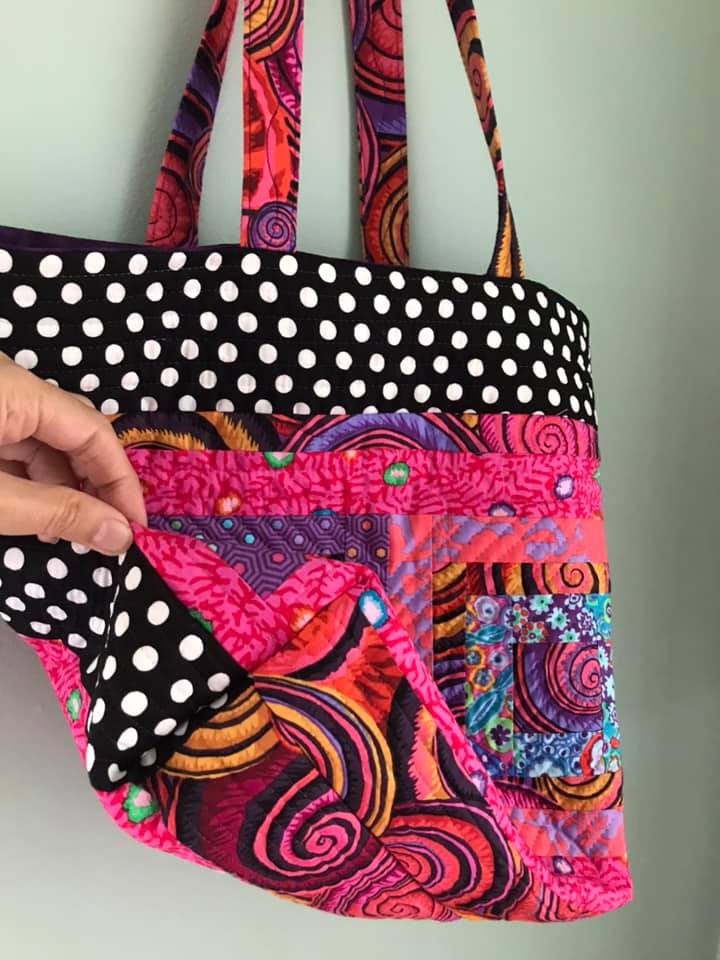 The next bag was made by Jane Knaub. I just love her combo of fabrics. There’s such fun value variation throughout the bag. It makes it all very interesting.