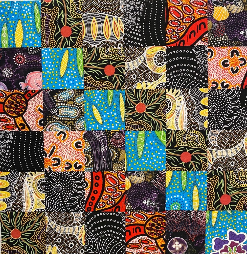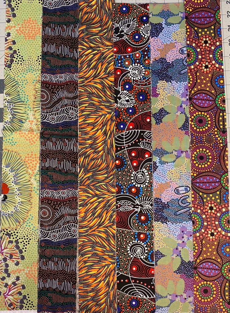 I also made two more Aboriginal trip quilt strip sets and finished up two blocks. Look at these gorgeous strips on my ironing board!