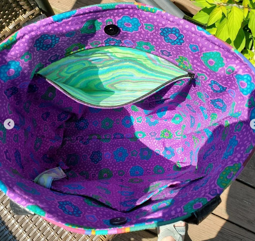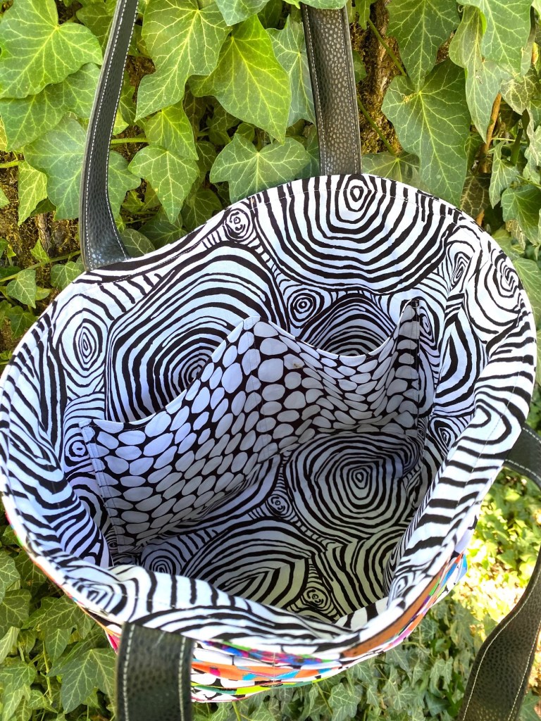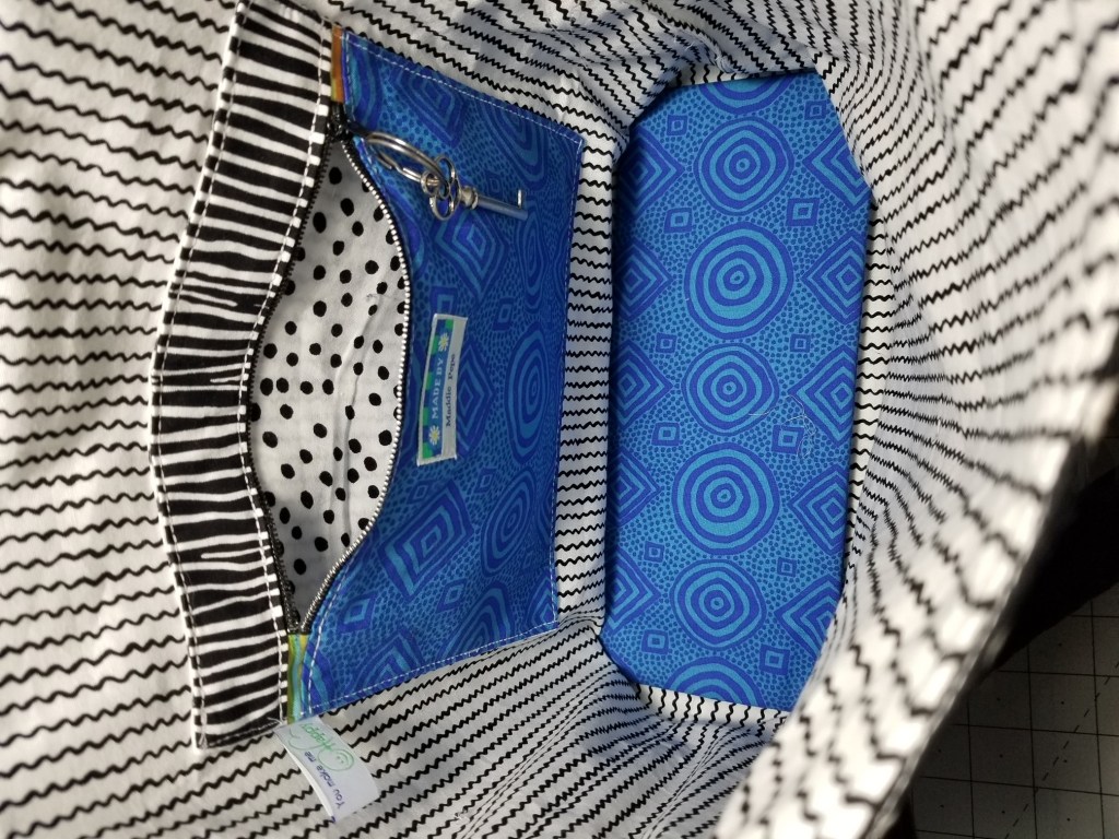 This next bag was made by Cherry Naylor. I love the blacks and greys. I think this may be the first Franknbag done is this color way. And look at that fun lining! Love it!