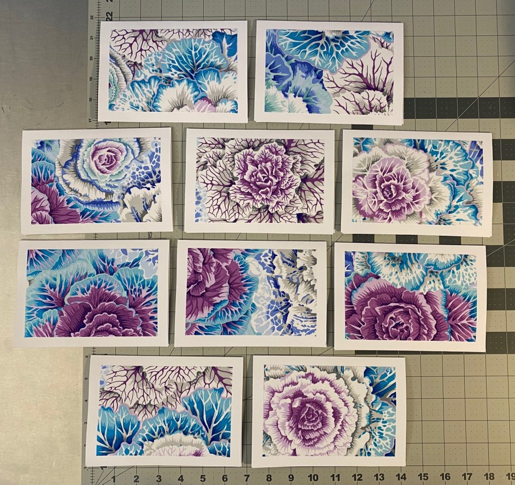And these cards are so gorgeous! I love the variation in each card within a color way. I’m really glad I went with different color ways of the brassica.