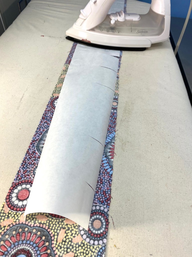 Last up is another Aboriginal fabric quilt. It’s almost exactly the same as the other, but there are some different fabrics here and the backing is different.