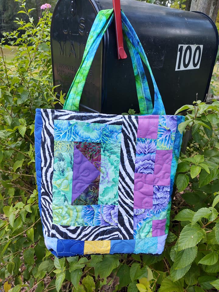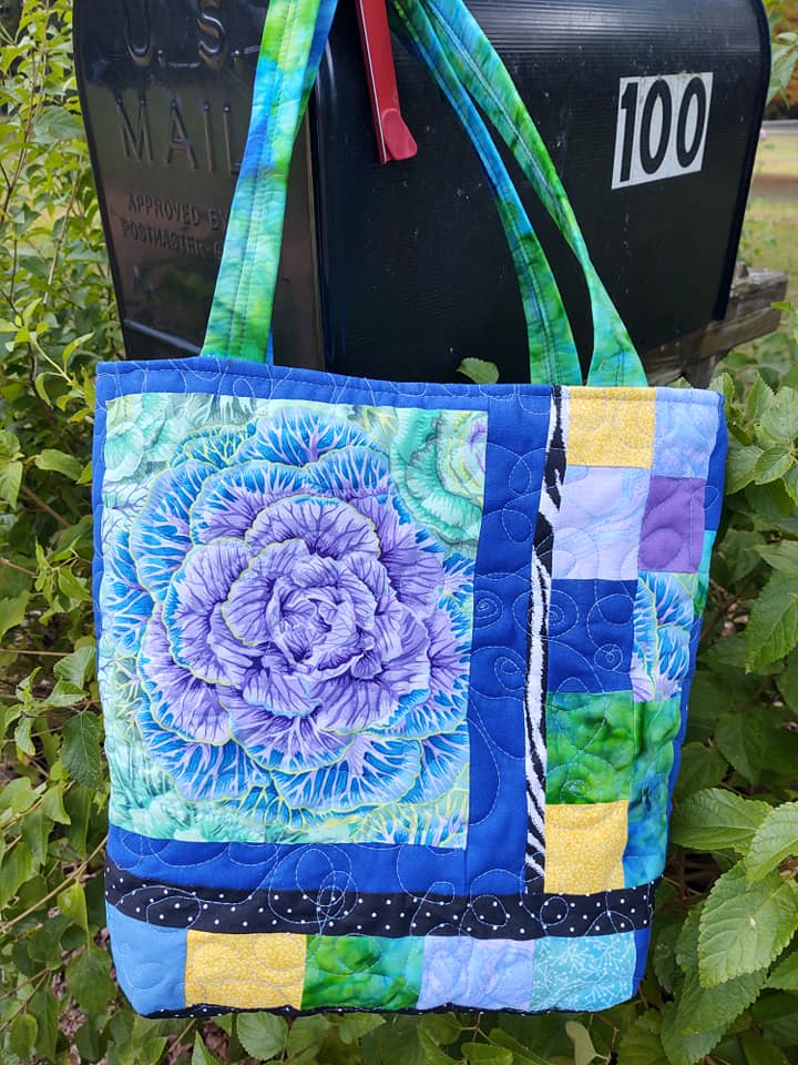 This one if from Cherry Naylor. She’s been a Frankenbag making machine! This one is really fun! I’m seeing that green floral all over the place right now. Quilters are using it in some amazing ways!