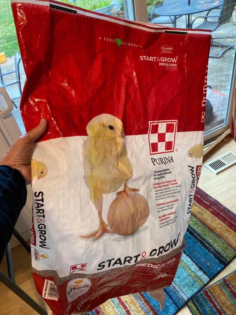 I’ve seen some really fun and simple tote bags made from these feed bags. So my friend gave me the one she had that was empty and my plan is to make a bag to develop a simple pattern. I’ll want to cut it to take advantage of the cute little chick picture, and I’ll have plenty of fabric left over to make handles and maybe an inside pocket. I won’t line these bags in the beginning since they will be utilitarian. But I may change the design over time.