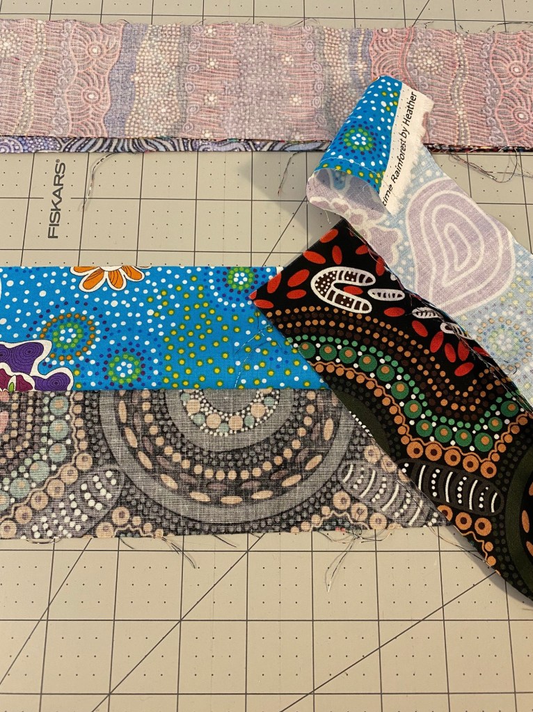 I also made a few strip sets for my Aboriginal fabric trip quilt.