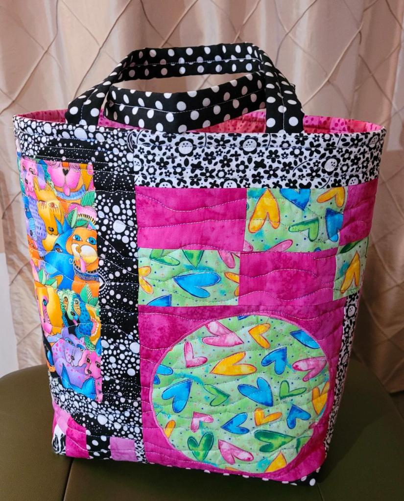 This next bag was made by Diane Rossy. She entered it in the fair and took first place!!! How cool is that? I just love her fun and vibrant fabrics! And you know I love that graphic black and white fabric! what a fun, really fun award winning bag!