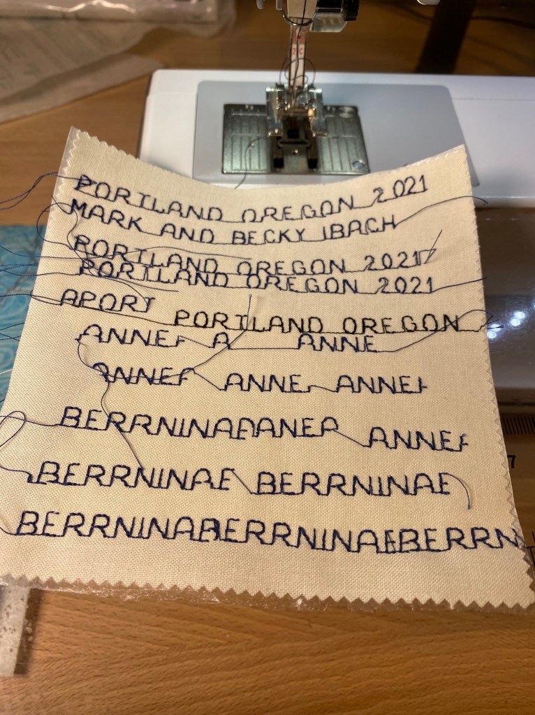 My plan was to use my sewing machine’s memory function to make labels using a basic alphabet.