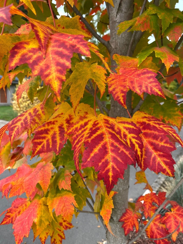 I ran across the prettiest little maple tree on our walk. Just look at these gorgeous colors!!!