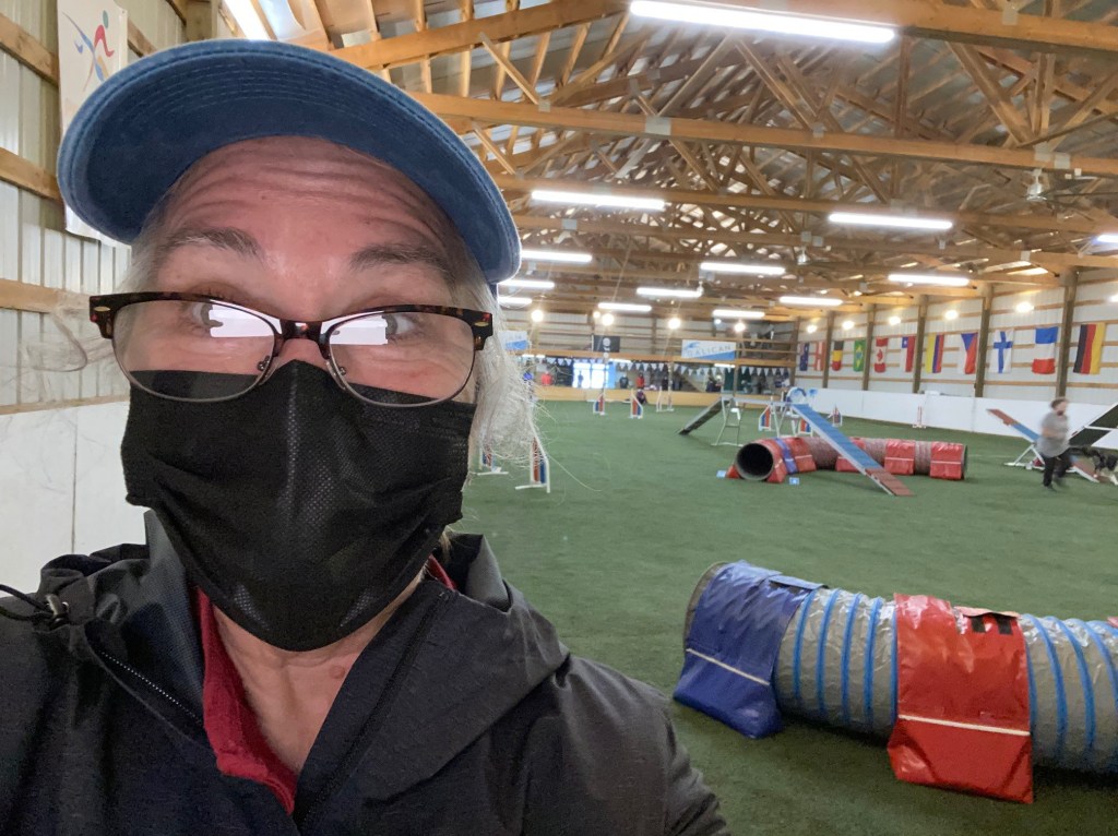 This was the first agility competition in our area that required either proof of vaccination or a recent negative COVID test for you to enter. Masks were required on the property, even outdoors when you were around other people. We were allowed to remove our masks when it was our turn in the competition ring.