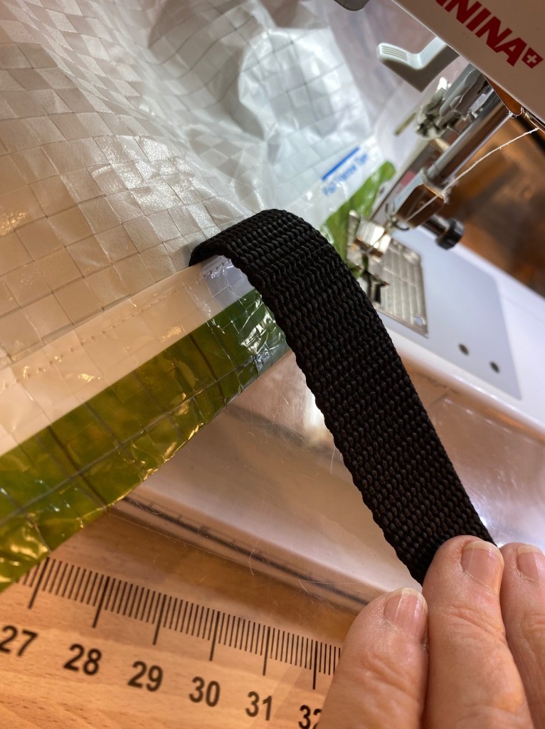 Most of the tutorials I looked at made the handles from strips of the bag fabric. But I decided to purchase some nylon webbing instead. I’m glad I didn’t spend time making the handles. I like the feel of the nylon handles much better. And they took a lot less time.
