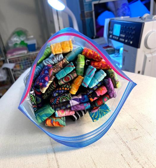Here’s around 40 completed key fobs crammed into a zip loc bag.