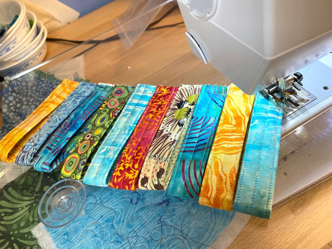 Then I chain sewed each strip into a loop, cut them apart, and applied the hardware.