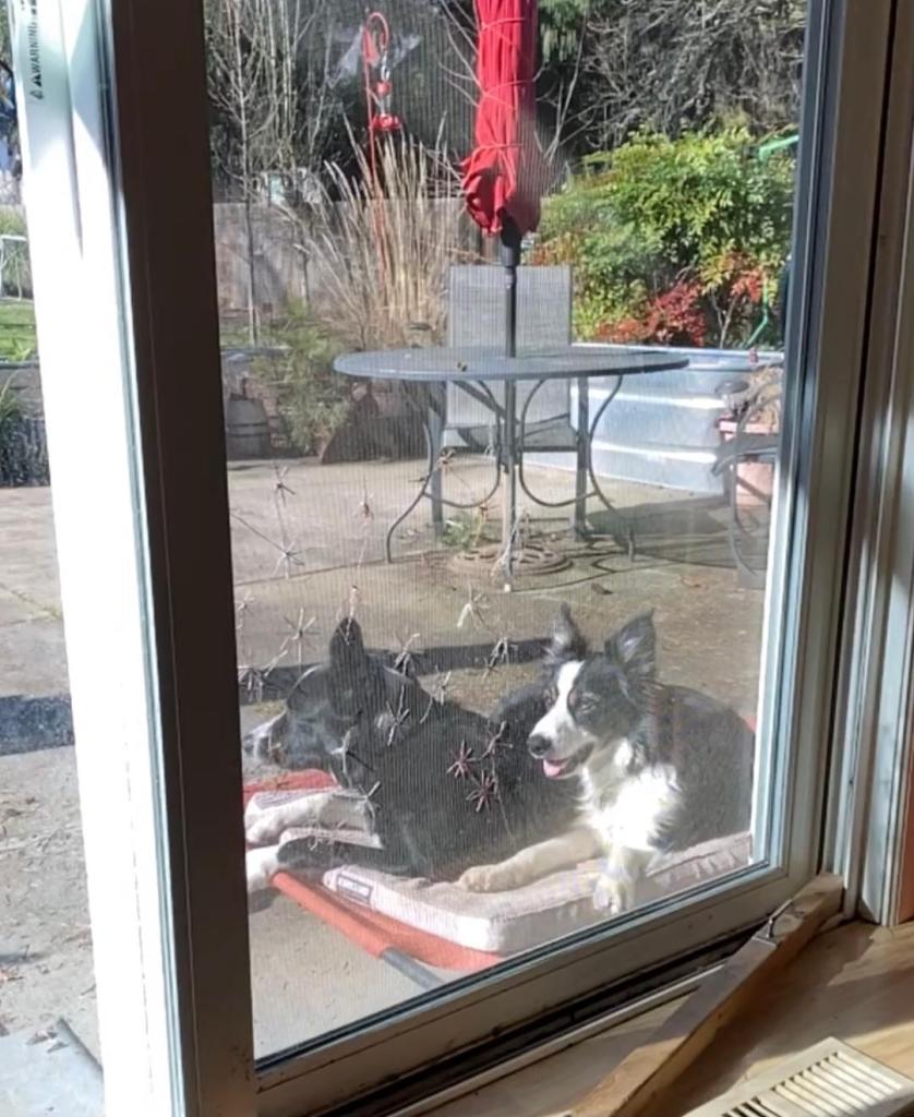 It was another beautiful day today. Bender was sleeping on a raised bed on the patio when Rico climbed onto the bed and curled up next to him. They were definitely enjoying the warmth of the sun.