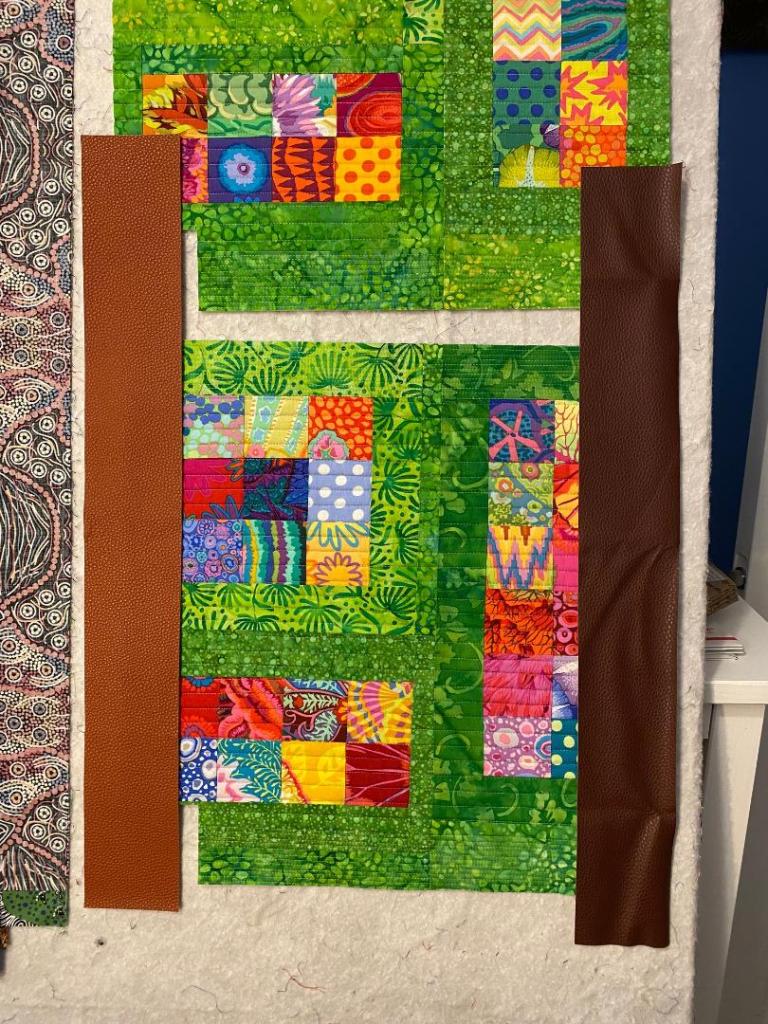 Here’s a view of both panels with the batik I’m going to use for the lining.