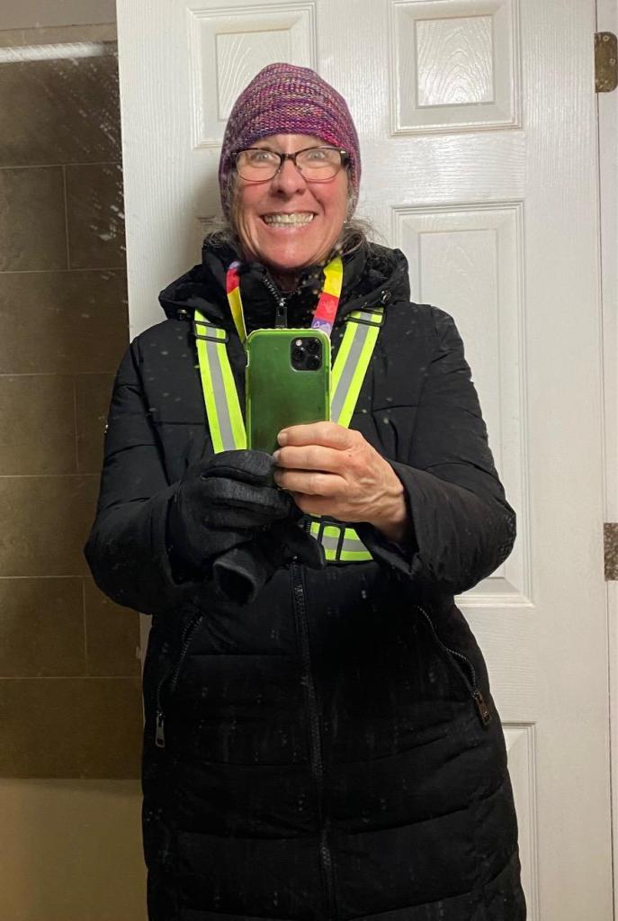 It was another cold day here in Portland on Wednesday, but we didn’t have the wind that we had yesterday. I don’t mind the cold when we have the sunshine. Here I am after our walk tonight. Bundled up like I was last night, but not nearly as cold on our walk.