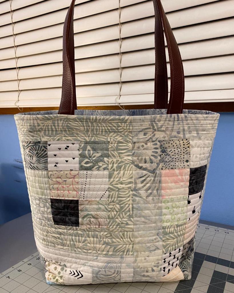 The next bag tonight was made by Lorna Clark. And I just love the muted and mossy colors of this bag! And like the bag above, it looks really well made and the quilting is so nice! She made this for herself and said she will enjoy using it.