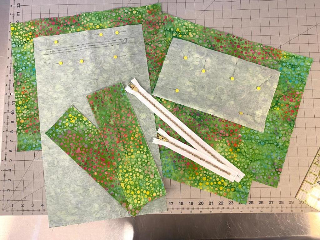 When I’m constructing the lining, pockets, and zipper placket, I get everything cut and fused and sit down and do as much sewing as I can. Here’s everything all prepped and ready to sew.