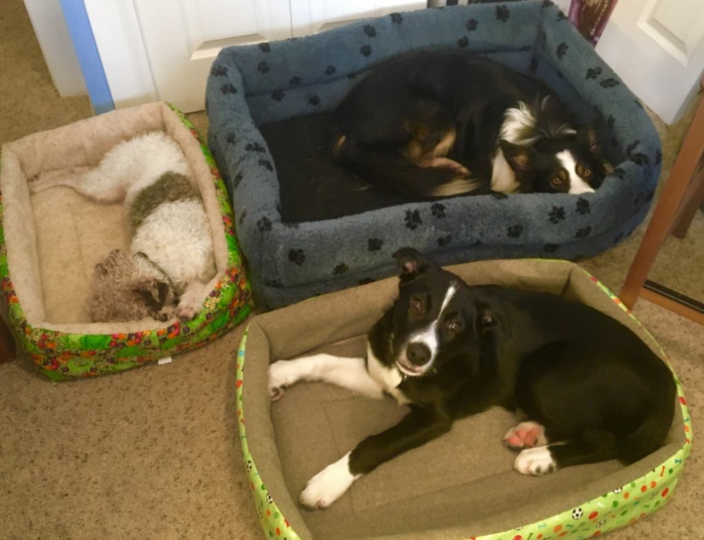I was reminded this morning of this photo from five years ago. All my good boys taking a nice nap in my sewing room.