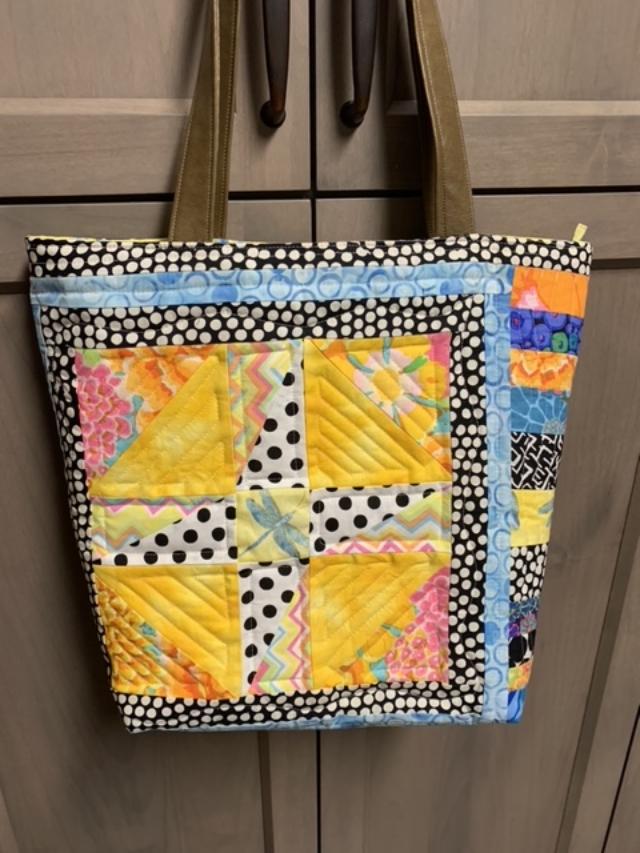 This first one was made by Judy Russell. This is her first Frankenbag and she used some Laurel Burch panels and left over blocks. I just love this! Those panels work so well in these bags. And I love how scrappy and free form this is.