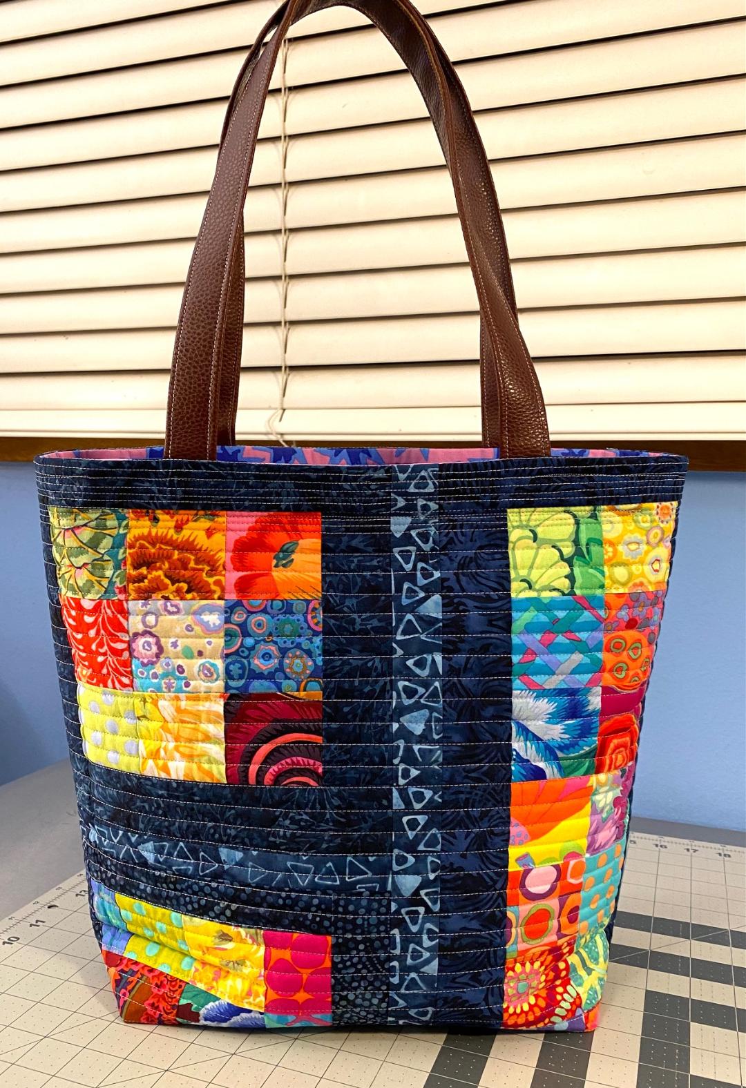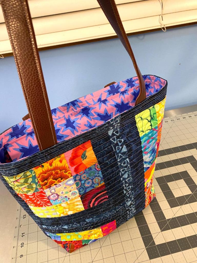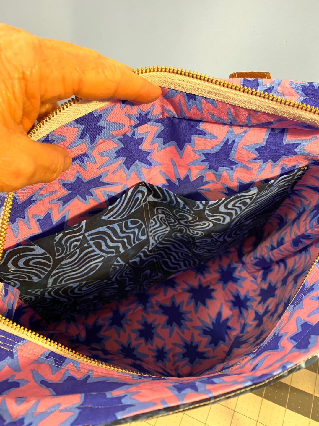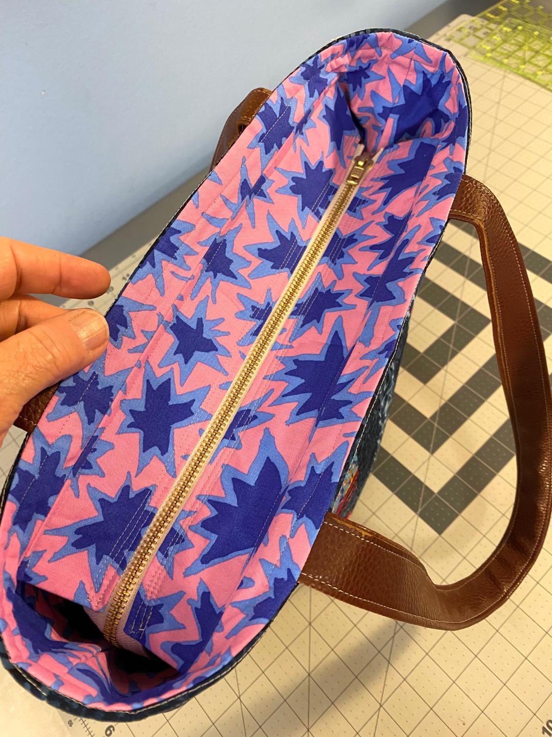 Thanks to everyone who commented on last night’s post about what lining I was loving for my indigo batik and KFC scraps bag.