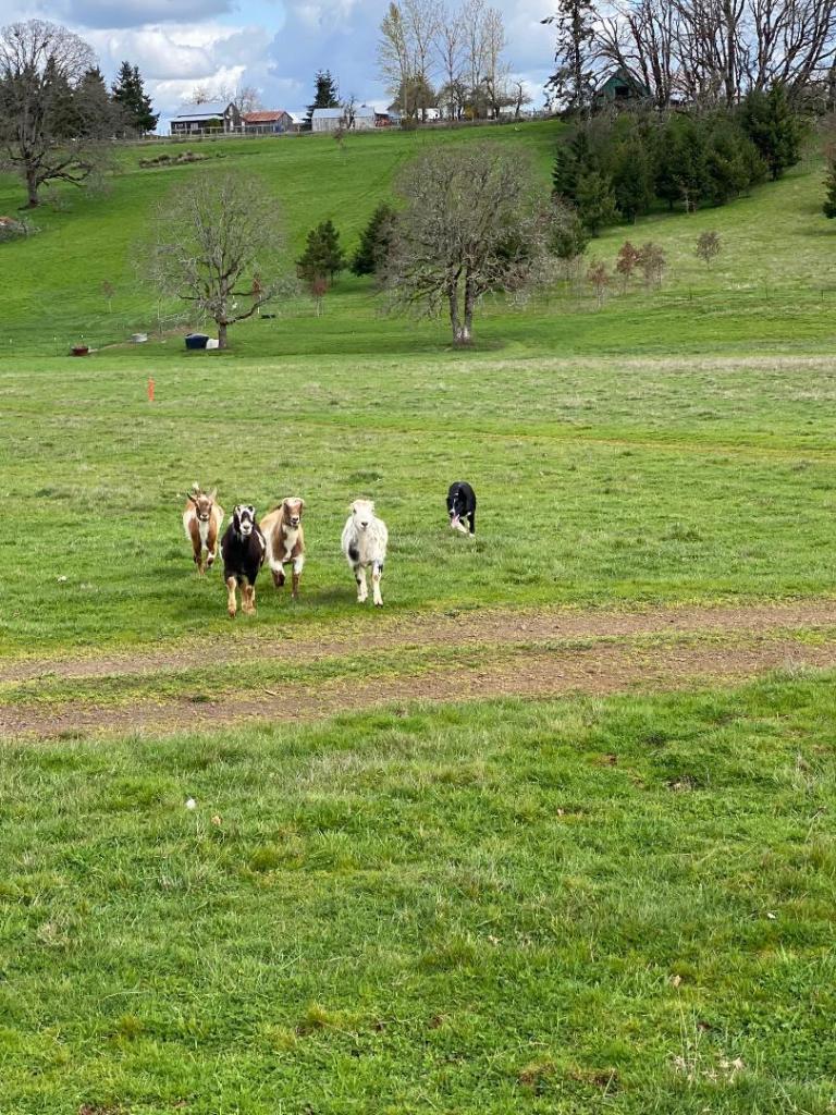 And for the first time in his life, Rico got to herd GOATS!!! I was afraid that there would be goats flying all over the place, but he was such a good boy! He had them all nicely organized and did amazing work!