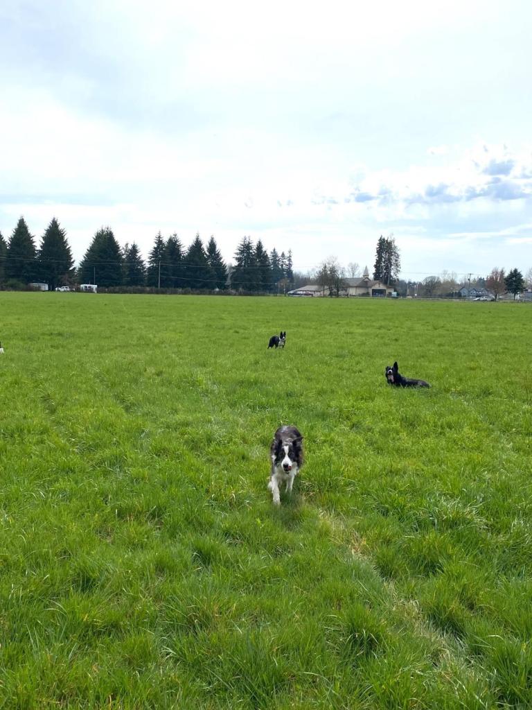 At around noon we took a break and I got Rico out of the car so we could do a little herding… this picture shows what a gorgeous day it was! It was cool enough that I wore a light fleece all day. Perfect weather for being outside all day. And look at that incredible sky! It was like that all day long.