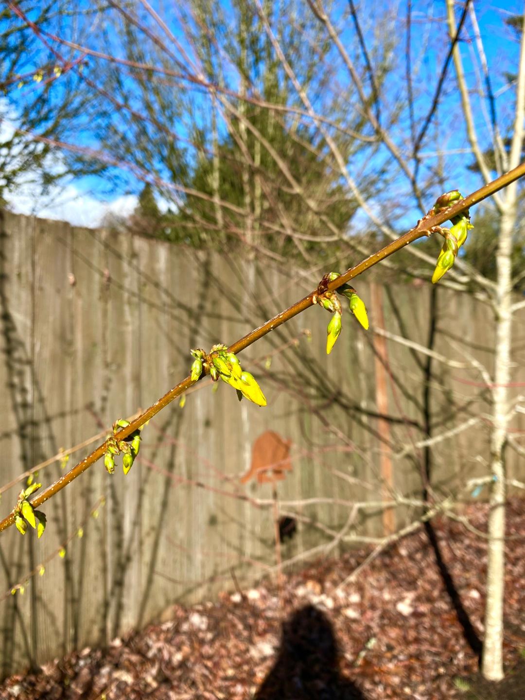 I went out and walked around the yard to see what was going on… forsythia buds opening up… flowering plum buds ready to burst… first daffodil fully bloomed…