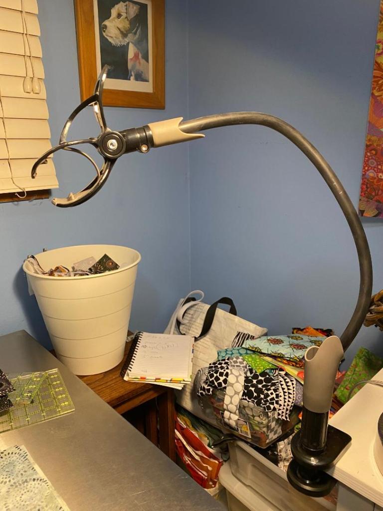 7. Always love the bags and detailed photos you show. That goose neck device looks like it could be used for quilting bigger quilts on a domestic machine. I’ve seen photos of quilters who clamp two (or even four) similar devices to their sewing table to help hold the bulk of a quilt up behind the machine so it takes the drag off when quilting. May have to look for them. Thanks for showing it.
