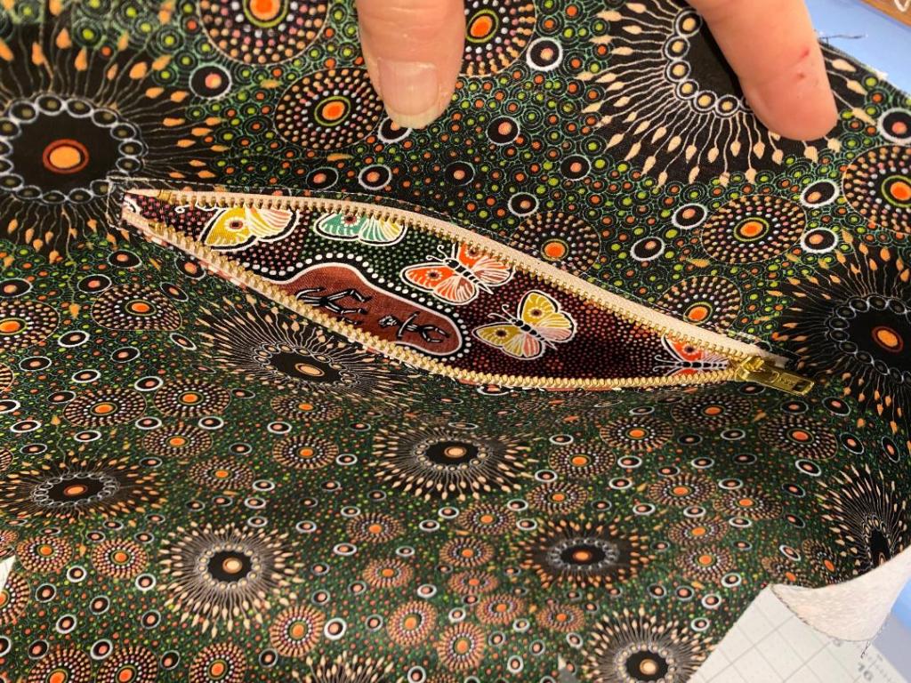 Here’s a photo of the zipper pocket after the zipper is sewn into the opening and before the pocket edges are all sewn together. It helps me understand how the mechanics of this all work.