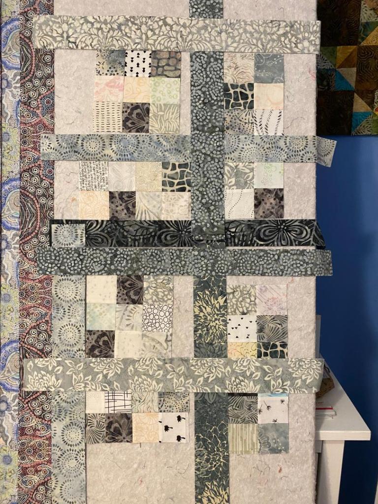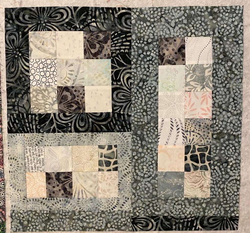 I dug in tonight after after work and got the block elements made and started auditioning some darker gray batiks to see what I liked.