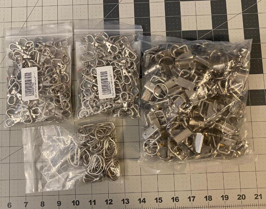 The two bags in the upper left are the hardware you would use to make a lanyard. There are 50 pieces in each bag. I had ordered one bag from Amazon, got a notification that it was delivered but I hadn’t received it. So I contacted Amazon and they sent another set. A few days later my neighbor contacted me to let me know he had my package. So I have more of those than I needed. Here’s what they look like.